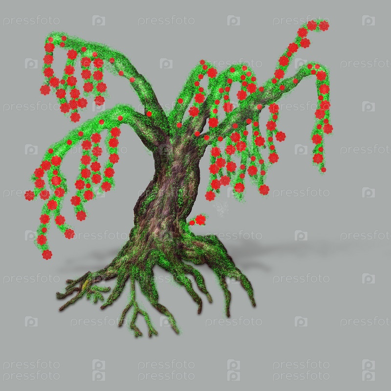 Цветущее дерево на темно-сером фоне