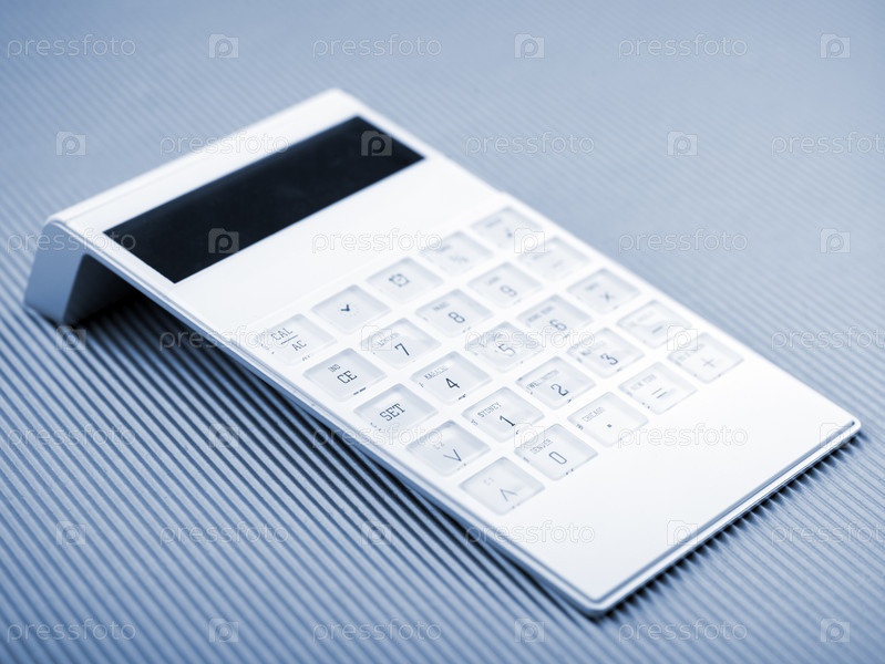 Белый калькулятор на офисном столе