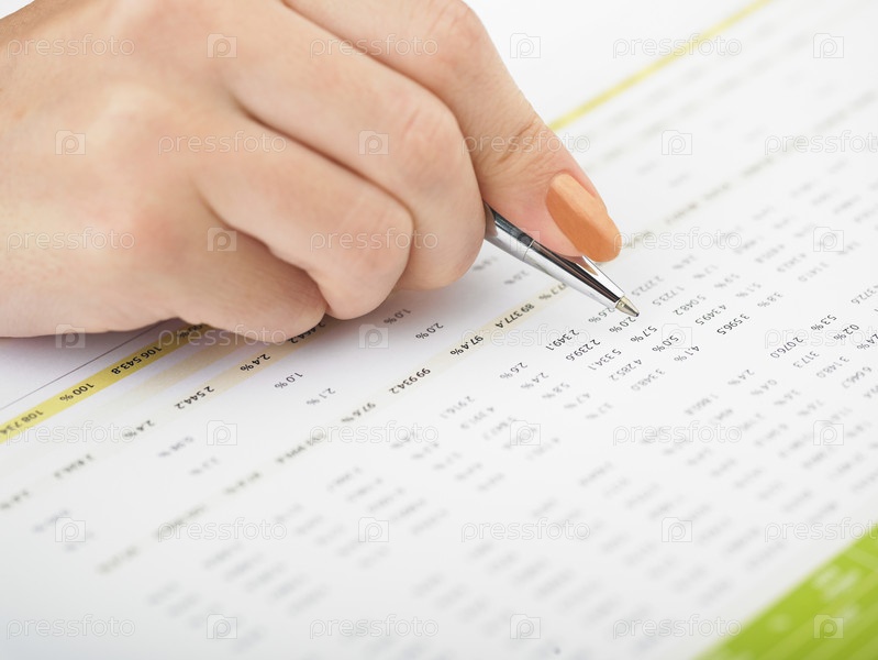 Рука с ручкой на фоне листа бумаги с числами