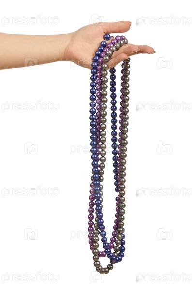 Жемчужное ожерелье в руке на белом фоне
