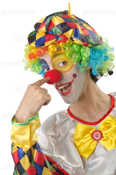 Забавный клоун на белом фоне