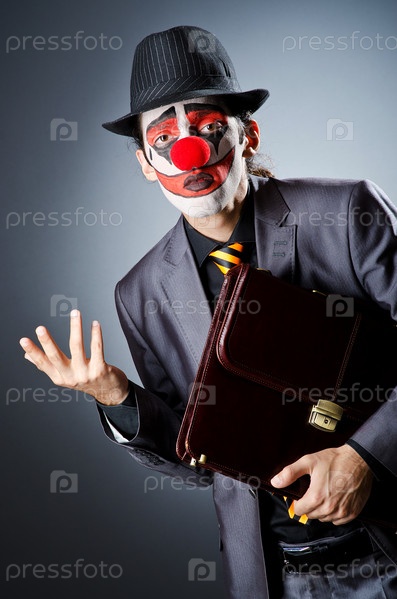Бизнесмен с лицом клоуна