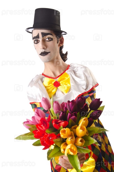 Печальный клоун с цветами