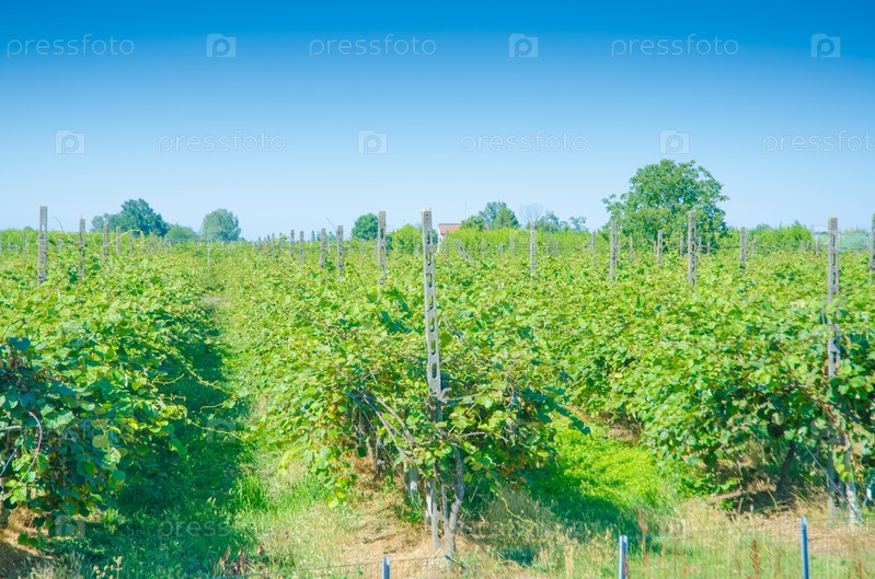 Виноградник в яркий летний день