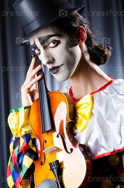 Клоун играет на скрипке