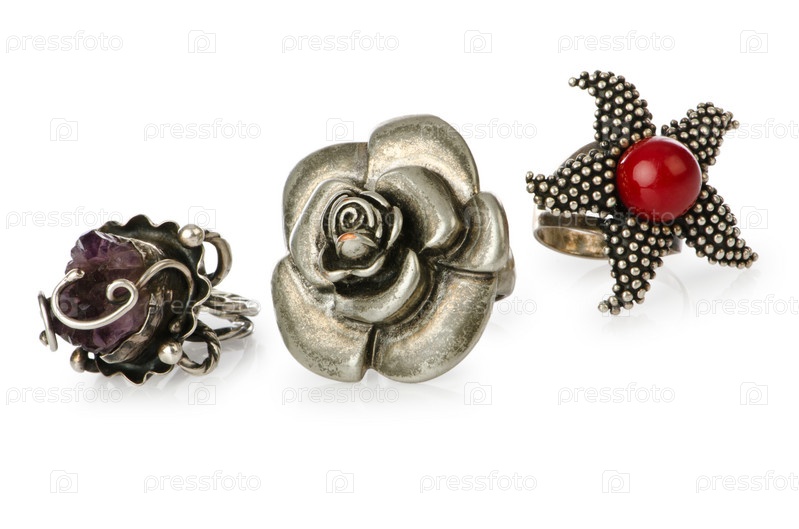 Ювелирные изделия - кольца, изолированные на белом фоне