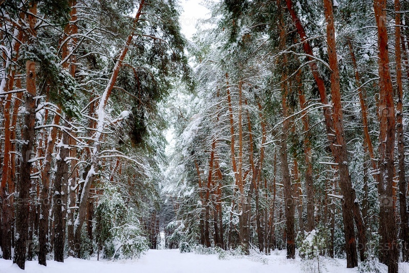 Морозный день в сосновом лесу