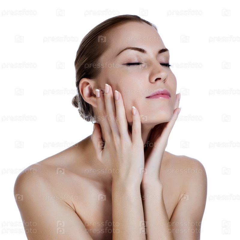 Красивая молодая женщина массирует лицо