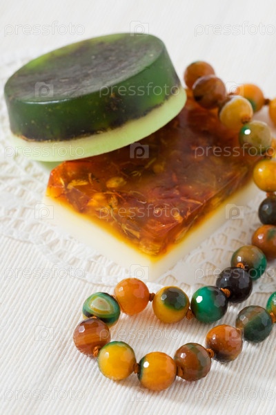Мыло ручной работы и янтарные бусы