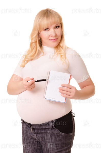 Беременная женщина с блокнотом и ручкой