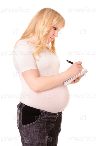 Беременная женщина делает заметки