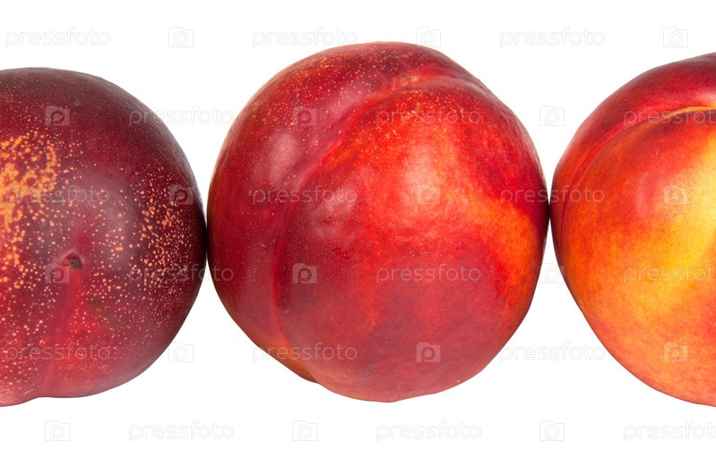 Три нектарина на белом фоне