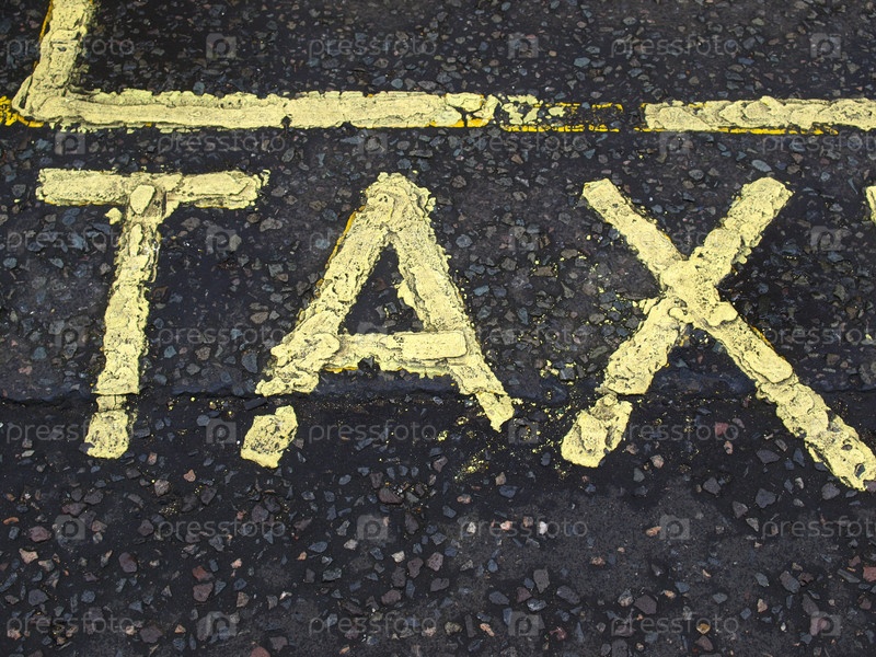 Желтый знак 'Tax' на асфальте