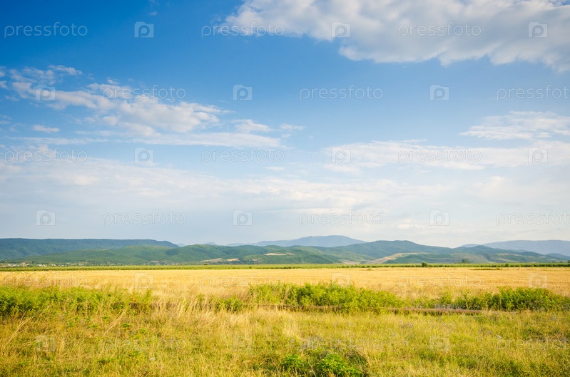 Однообразный сельский пейзаж в летний вечер
