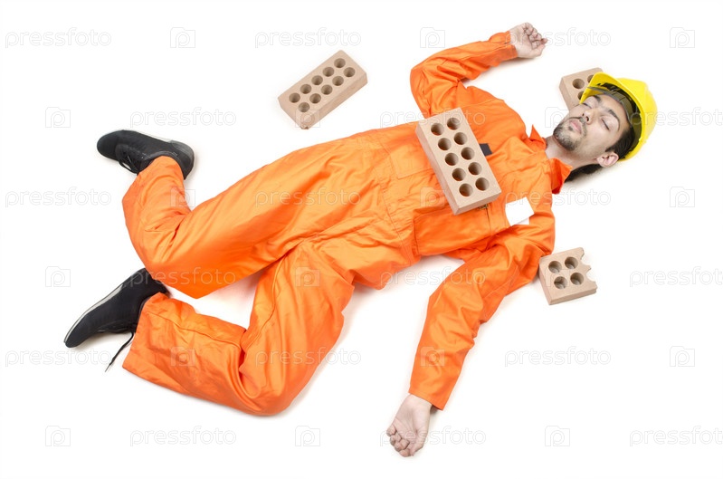 Раненый рабочий на белом фоне