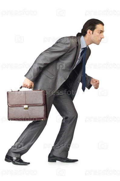 Человек с портфелем на белом фоне