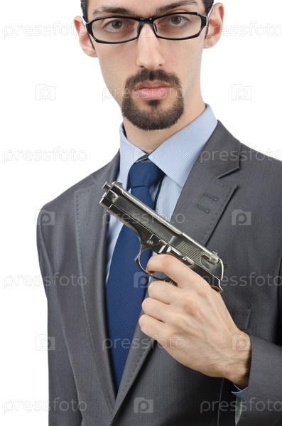 Человек с пистолетом, изолированный на белом