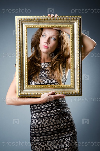 Молодая женщина с фоторамкой