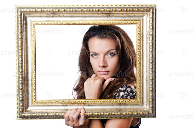 Молодая женщина с фоторамкой