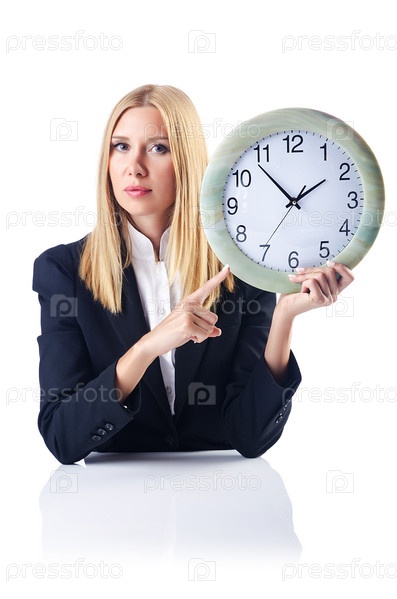 Предприниматель с часами, изолированная на белом