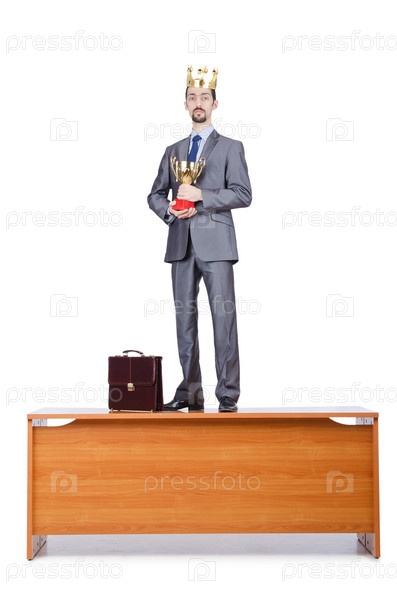 Бизнесмен с короной, изолированный на белом