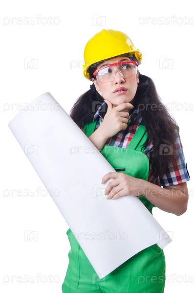 Женщина-архитектор, изолированная на белом