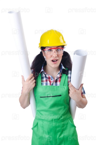Женщина-архитектор, изолированная на белом