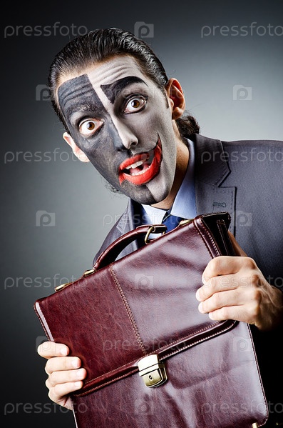 Бизнесмен в маске клоуна