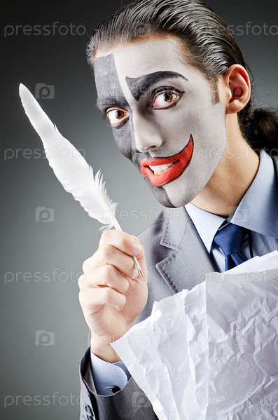 Бизнесмен в маске клоуна