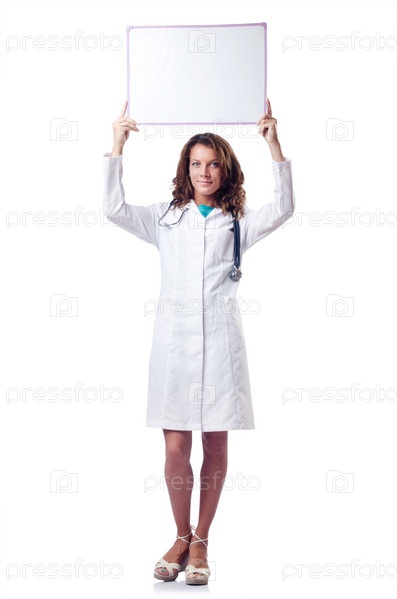 Женщина-врач с пустым баннером