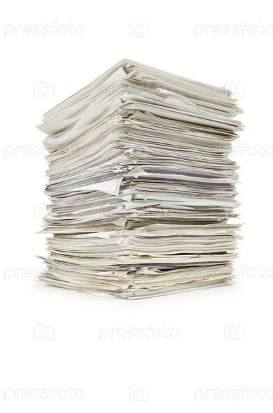 Кипа бумаг на белом фоне