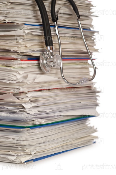 Стопка документов и стетоскоп
