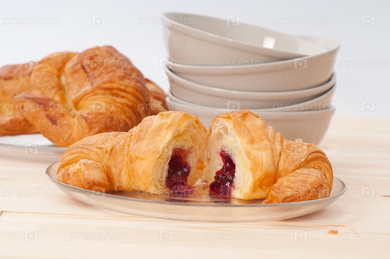 Французский круассан с вареньем и ягодами