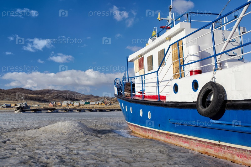 Лодка на замерзшем Байкале
