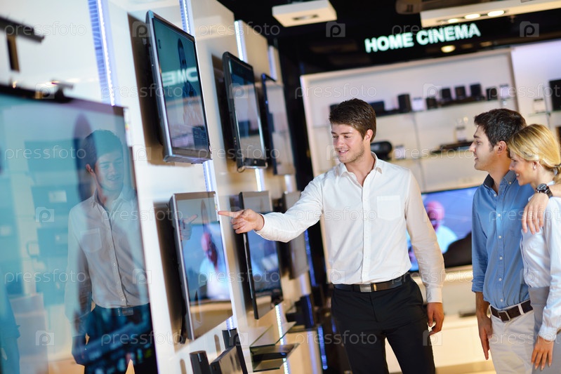 Молодая пара в магазине электроники