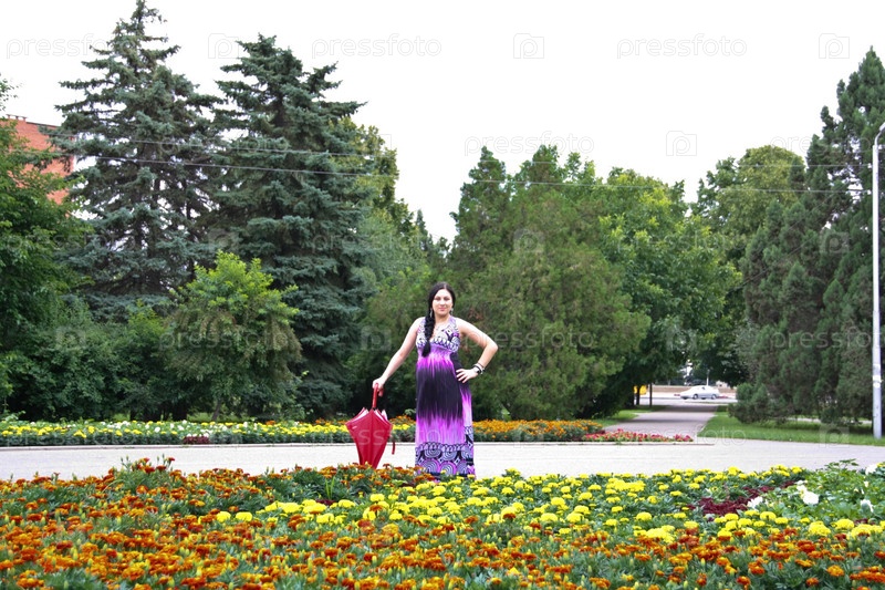 Беременная женщина на прогулке в городском парке