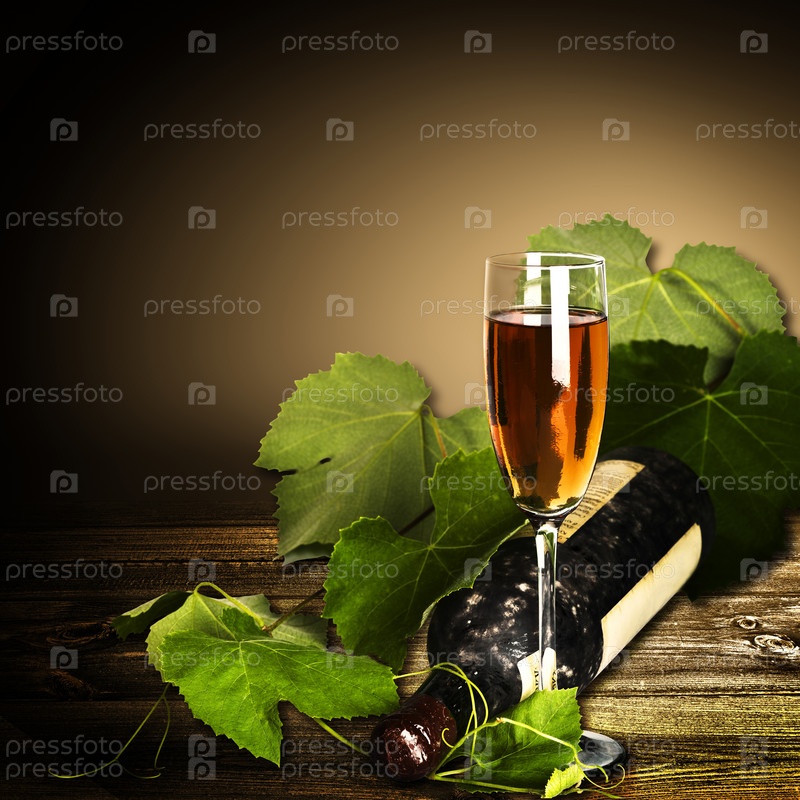 Винодельческий фон. Бутылка и виноградная лоза