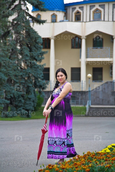 Беременная женщина на прогулке в городском парке
