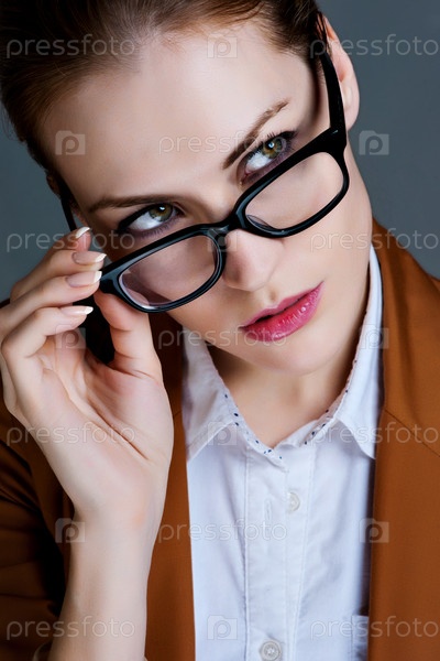 Красивая деловая женщина в очках. Портрет крупным планом