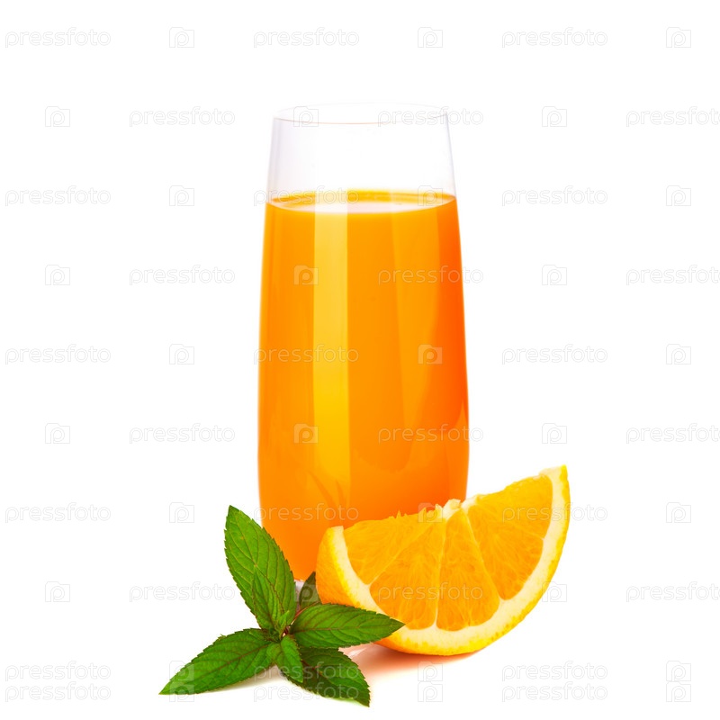 Апельсиновый сок и ломтики апельсина, изолированные на белом