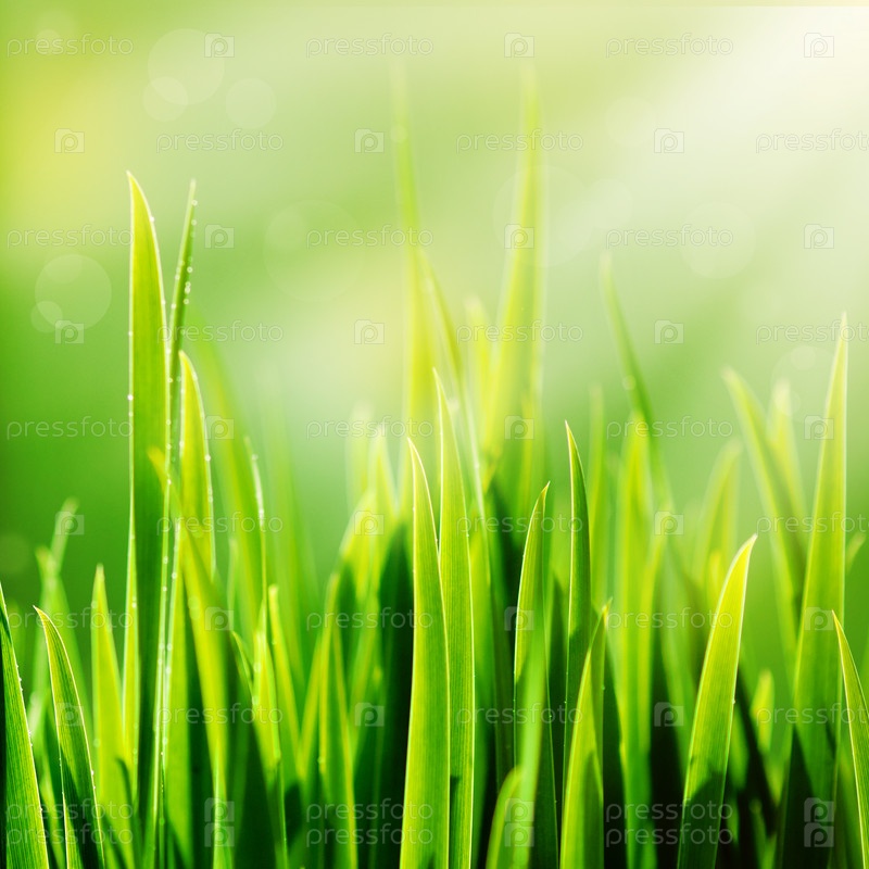 Весенняя зеленая трава и солнце