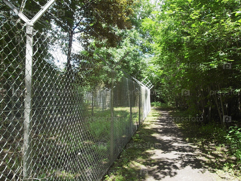 Деревья в лесу с колючей проволокой