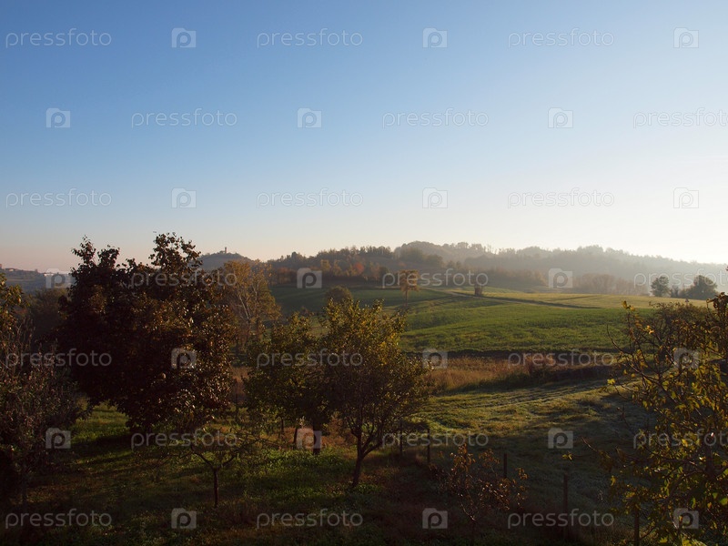 Панорама холмов Маркоренго в Брузаско вблизи Турину, Пьемонт, Италия