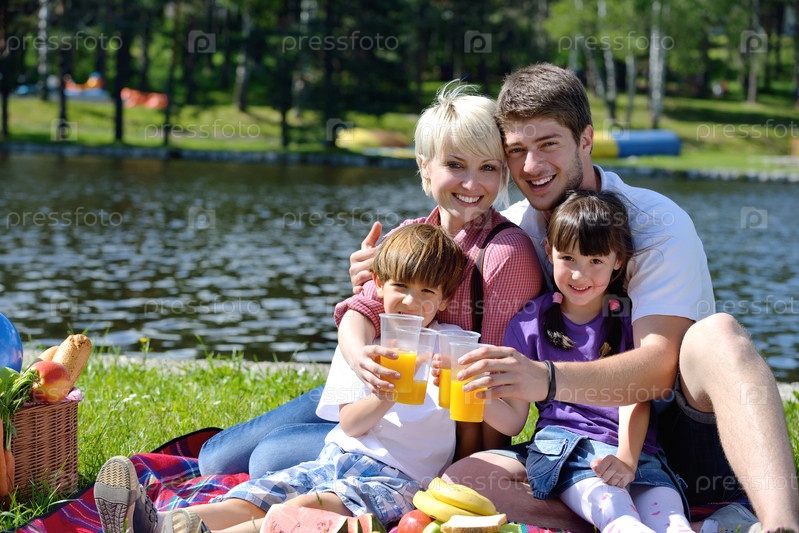 Счастливая семья на пикнике на свежем воздухе