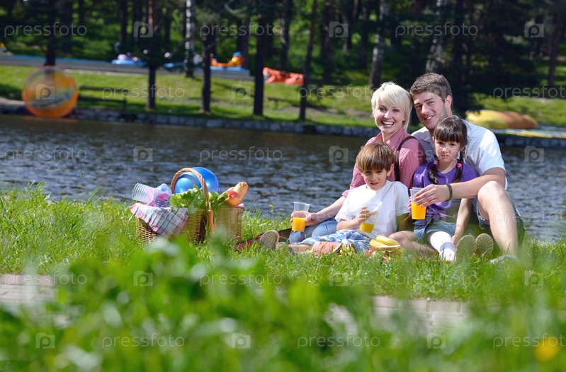 Счастливая семья на пикнике на свежем воздухе