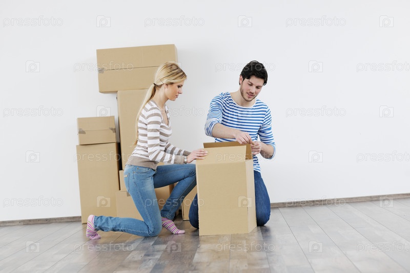 Молодая пара переезжает в новый дом