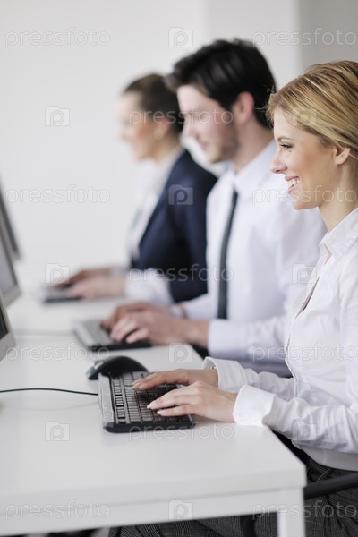 Группа деловых людей, работающих в офисе в службе клиентской поддержки