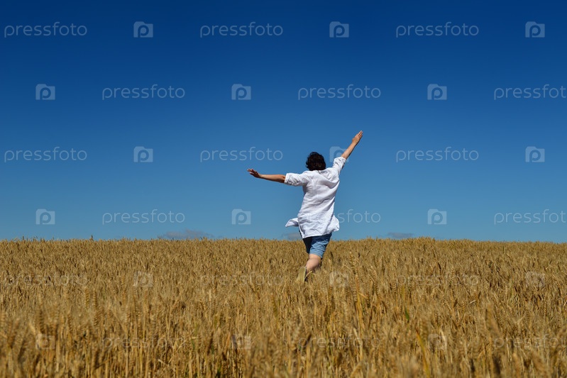 Молодая женщина на пшеничном поле
