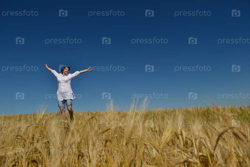 Молодая женщина на пшеничном поле летом
