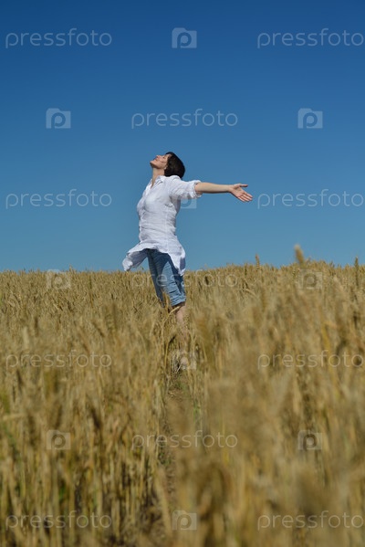 Молодая женщина на пшеничном поле